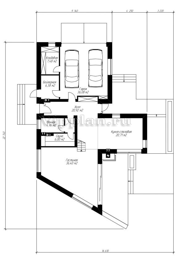 | Размеры дома: | 22.74м×16.61м |