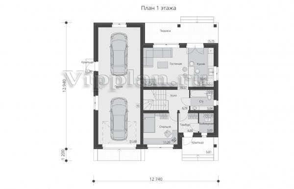| Размеры дома: | 12.74м×14.14м |