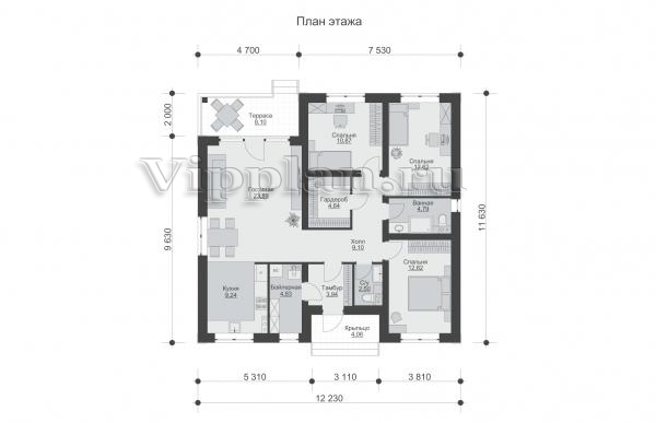 | Размеры дома: | 11.63м×12.23м |