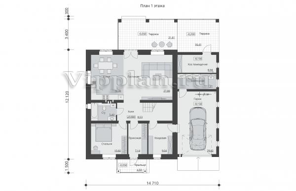| Размеры дома: | 17.02м×14.71м |